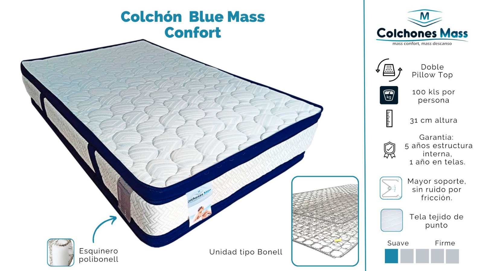 Su parte interna en resorte tipo Bonell brinda un apoyo uniforme en todo el cuerpo asegurando un soporte optimo.